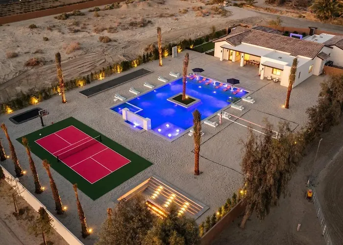 Nahana Desert Oasis Indio villa ligt binnen circa 10-minuten rijafstand van Empire Polo Club en biedt toegang tot toeristische plekken in de omgeving.
